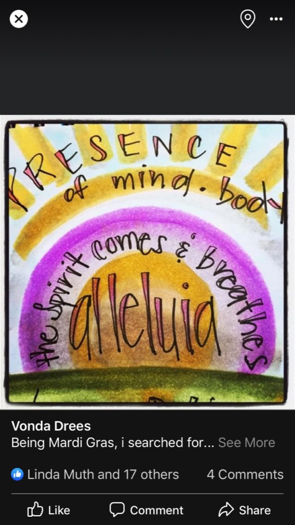 Being Mardi Gras, i searched for a purple, gold and green journal page… Yep, this one works for today. See you on the flip side, #Alleluia!