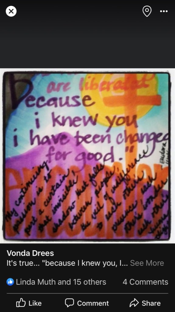 It’s true… “because I knew you, I have been changed for good.” Love that song from Wicked.