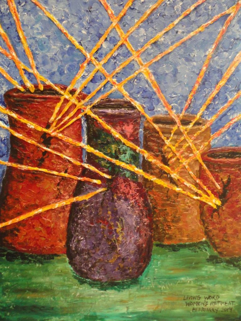 presenting the collaborative work painted at the Living Word Women’s Retreat in February 2014… ![]()
