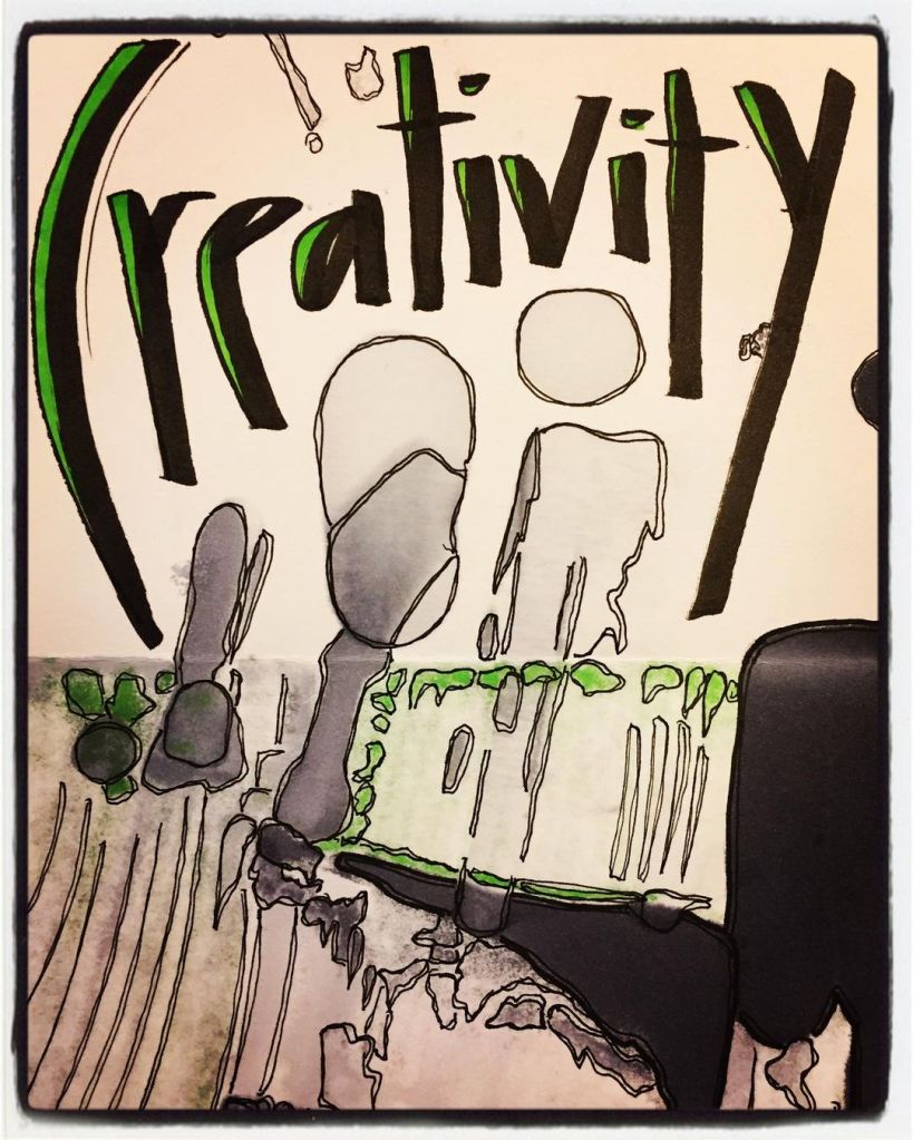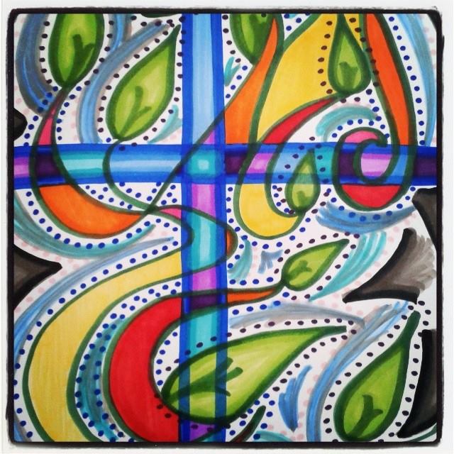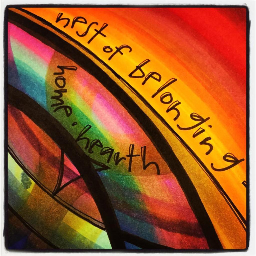 I’m warming up the markers for a couple new projects, choosing colors and working the themes. In the meantime a friend sent me a writeup on a triple spiral labyrinth, similar to the Guild’s. The article calls the center triangle space formed by the three pods “the nest of belonging.” I really like that.