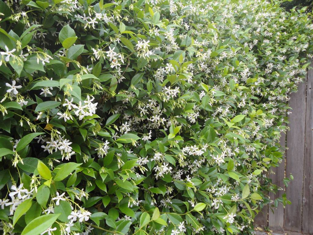 [2021 note: Jasmine growing along our fence when we lived in Katy, Texas.]