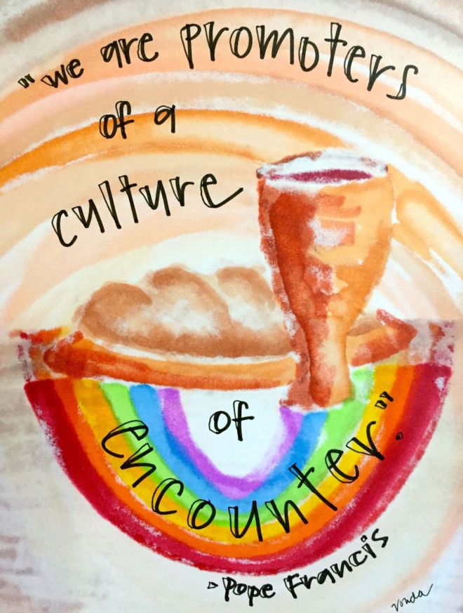 Sacred Arts Week has just begun at the Grunewald Guild. I am grateful to be experiencing Scott Burnett and Laurie Rudel’s “Word to Image, Image to Word” class. The text focus for the week is the Emmaus story which has brought to mind this journaling image.