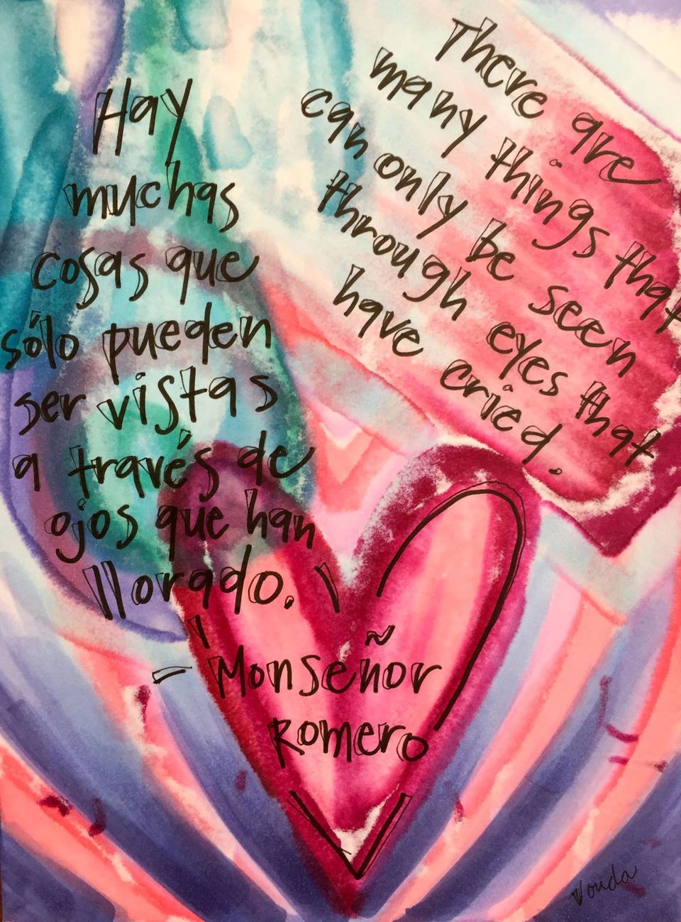 Rohr’s words remind me of others from Saint Oscar Romero of El Salvador: “Hay muchas cosas que sólo pueden ser vistas a través de ojos que han llorado.” (There are many things that can only be seen through eyes that have cried.)
