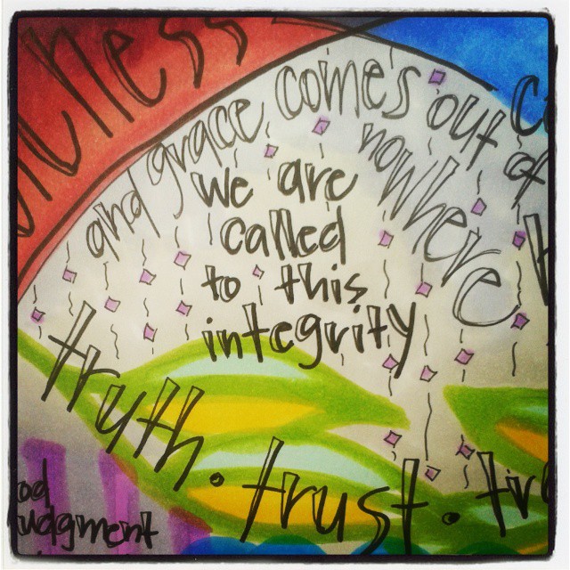 In seven years of frequently using the arc shape in my journaling, I’ve never really thought about why I do that. The photo from 2014 of me at the window of Luz Divina Lutheran Church in Márquez, Perú, is telling. I see it now.