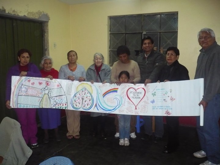2010 – From more than seven years ago comes this paper mural I did with friends in Peru as we prayed together over a number of months. I’m smiling as just yesterday as I took out from storage a mug that was a gift from Maura, the dear woman in the red shawl (2nd from the left). I was looking for something special to hold my paintbrushes.