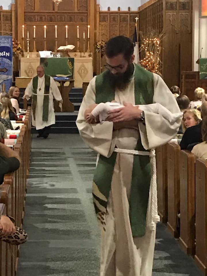 2019 – My son, Paul, with little Benjamin, the first child Paul baptized.