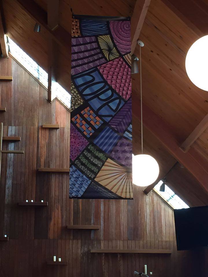2015 – Creativity breeds creativity. The following images show Rev. Renie Kirk’s ingenuity in enlarging my Advent design for her congregation. π
