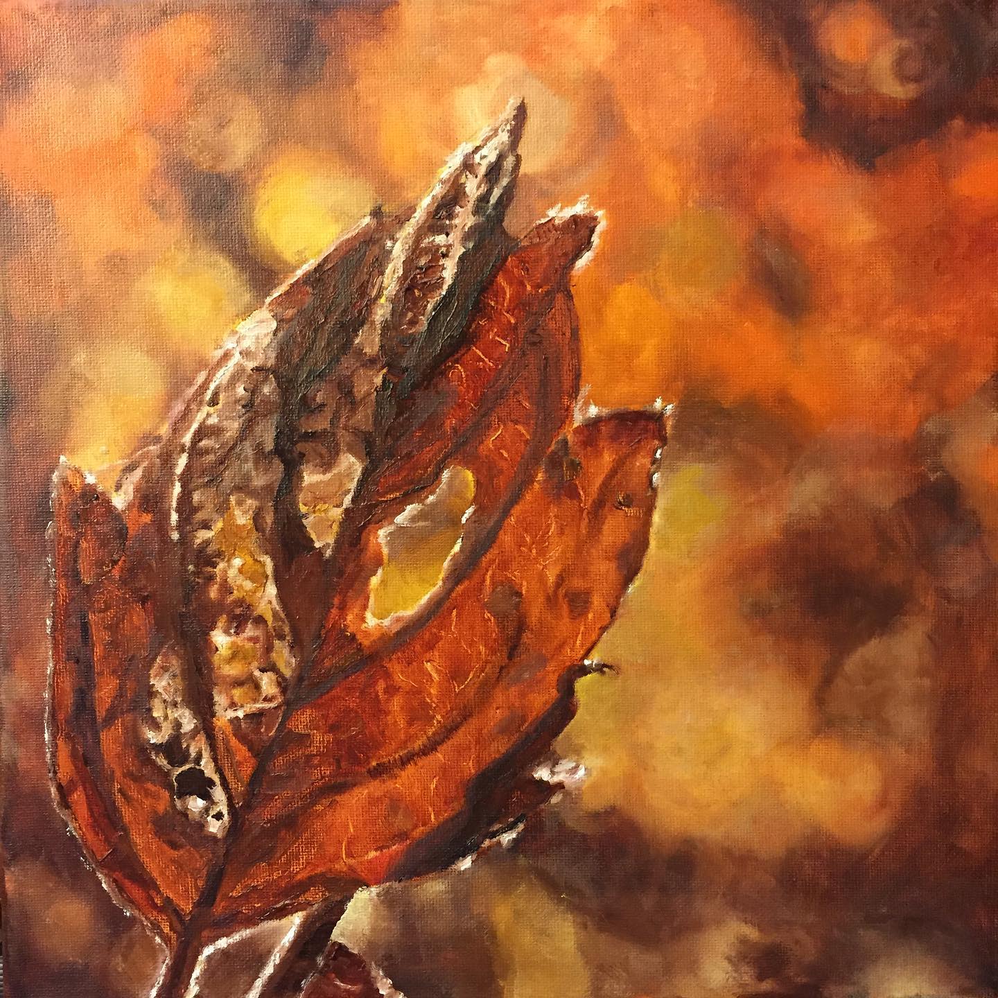 I wrote this haiku in 2020 to accompany the day’s leaf oil painting: