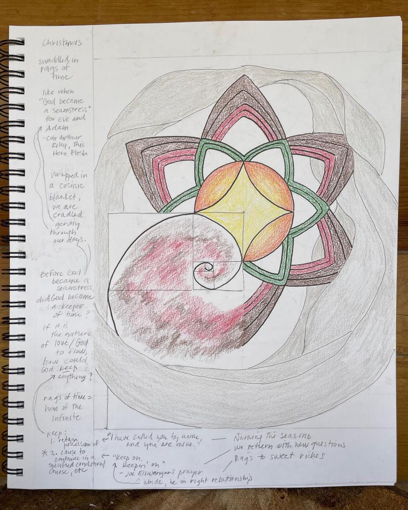 Cole Arthur Riley in her book, This Here Flesh, writes about the love present when “God became a seamstress” for Eve and Adam, “to help them stand unashamed.” Influenced by her writing, I wonder about God swaddling Earth in rags of time like Mary swaddled the baby Jesus.