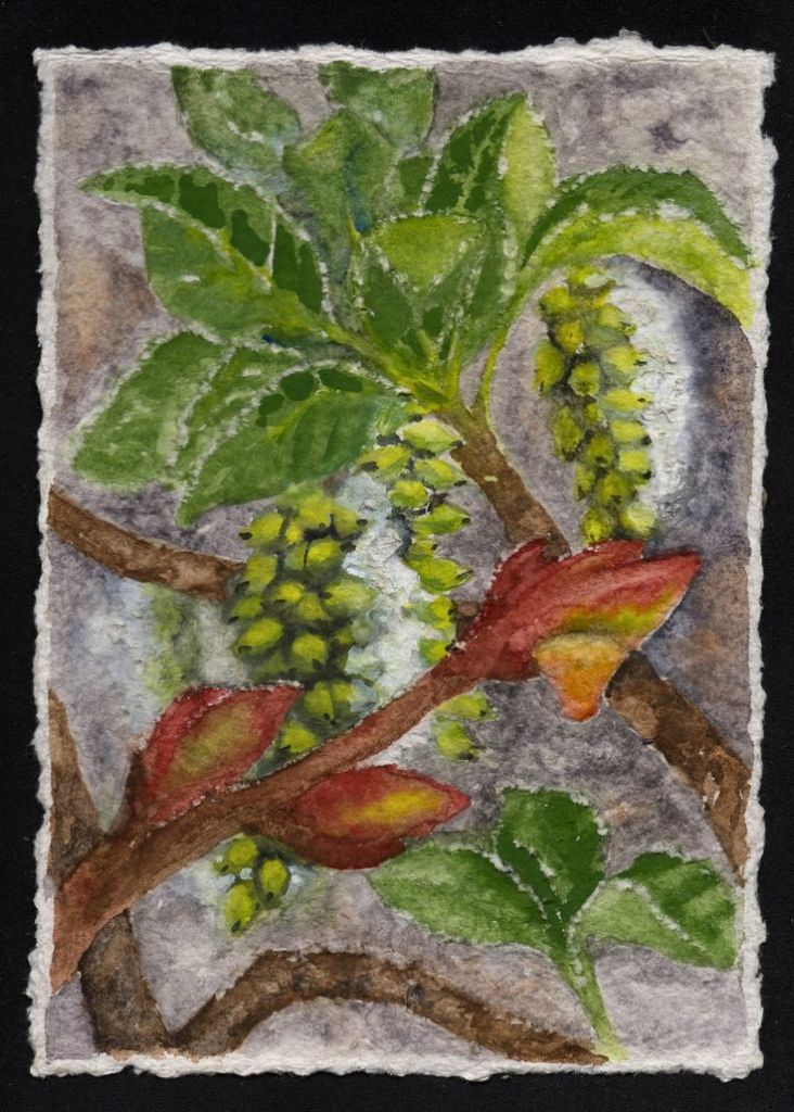 While working on this painting of cottonwood branches, I learned about and reflected on the healing powers of the bud’s resin. Cottonwood salve is also referred to as Balm of Gilead.