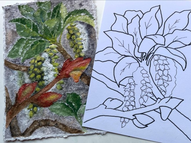 For this series, I am grateful to have used handmade paper from White Dragon Paper and watercolor paints from Natural Earth Paint.