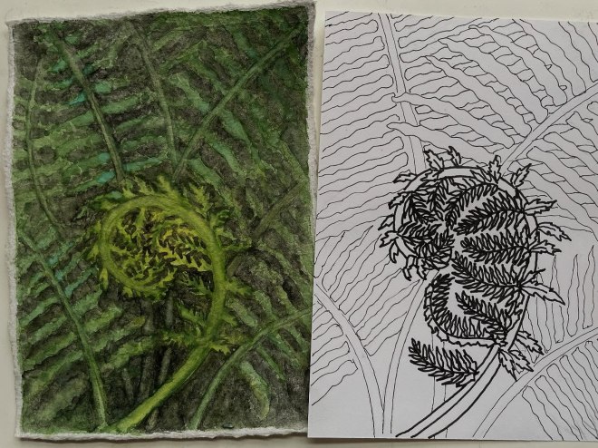 I held in my heart the blessing Jesus gave in the Beatitudes as I painted the unfurling fern.