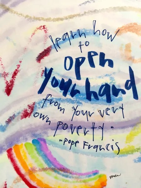 Reading that prompted me to search my blogs for things Pope Francis inspired. Two journaling images popped up, both featuring upside-down rainbows on back-side pages. My spirit felt a wink.